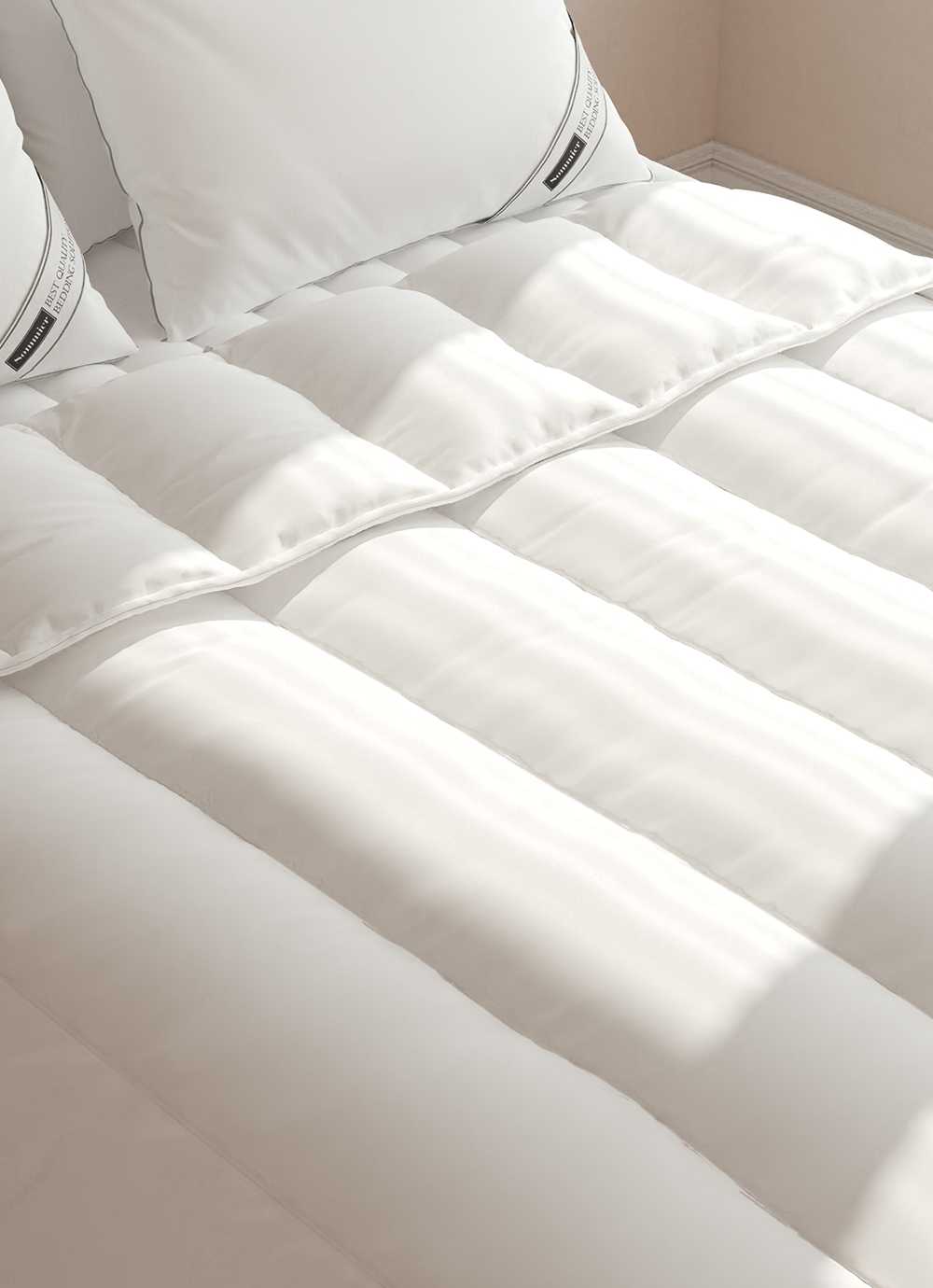 이불솜만 찍은 사진은 없어서 타사이지만 이불커버 씌운 사진으로 첨부했어요. 커버에 솜 고정끈이 없어서 살짝 걱정했는데, 솜이 적당히 무게감 있고 미끄러지지도 않아서 자고 일어나도 따로 놀지 않아요! 개인적으로 추천합니다.