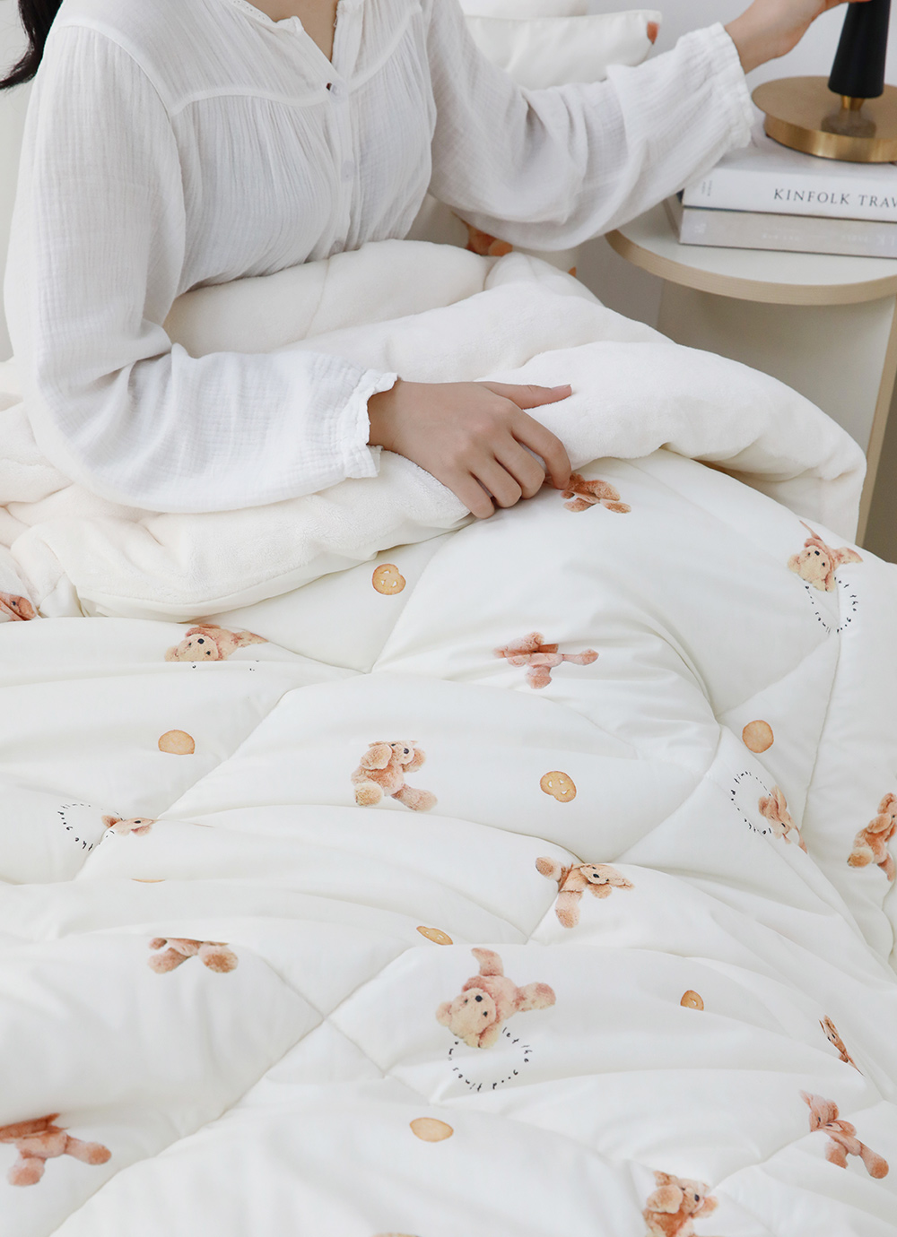 색상도 아이보리톤으로 너무 깨끗하고 곰돌이도 귀엽고 무엇보다도 양쪽 극세사가 달라 2가지 기능으로 사용할수있어서 좋아요.