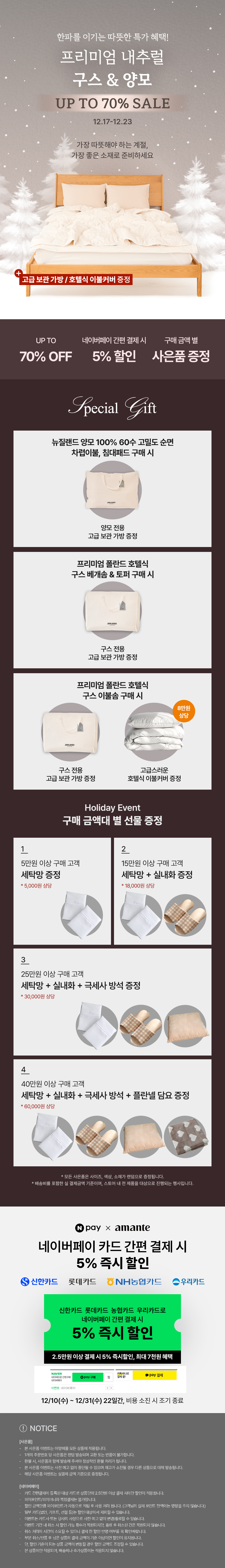누아즈 구스 차렵이불 겸 구스 이불솜 SS/Q/K 4colors